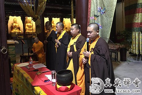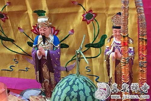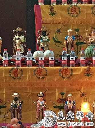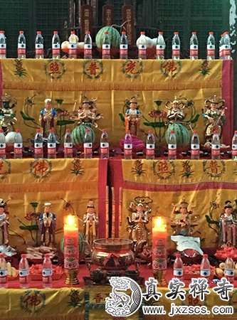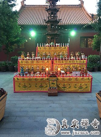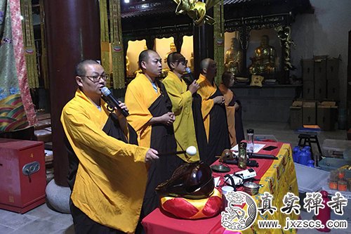 2018年6月26日,嘉兴真实禅寺举行华严法会之斋天仪式。寺院僧众及信众齐聚大雄宝殿,场面庄严,各式殊胜供品铺设齐全。