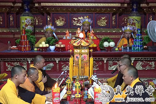 2018年6月27日,嘉兴真实禅寺举行华严法会之瑜伽焰口。寺院僧众及众多护法居士共同参加,法会如法如律,坛场清净庄严。
